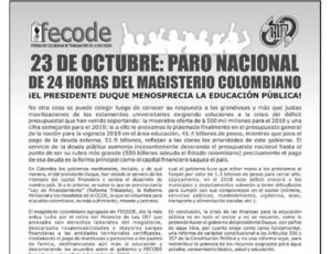 23 DE OCTUBRE: PARO NACIONAL DE 24 HORAS DEL MAGISTERIO COLOMBIANO