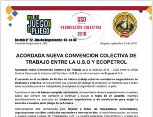 Acordada nueva convención colectiva de trabajo entre la U.S.O y ECOPETROL