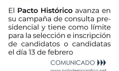 El Pacto Histórico avanza en su campaña de consulta presidencial con las precandidaturas de Gustavo Petro, Francia Márquez, Roy Barreras y Arelis Uriana. Saluda la llegada...
