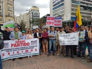 El 29 de marzo, Dignidad Agropecuaria realizó un Plantón para exigir, al Gobierno Nacional, Ministerio de Agricultura y Banco Agrario, solución a varios asuntos que, tramitados incluso hace varios años, no se han resuelto a cabalidad por los permanentes incumplimientos oficiales.