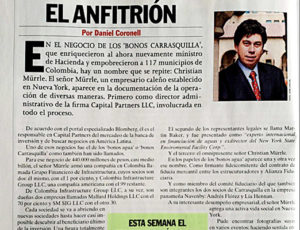 En el negocio de los ‘bonos Carrasquilla’, que enriquecieron al ahora nuevamente ministro de Hacienda y empobrecieron a 117 municipios de Colombia, hay un nombre que se repite: Christian Mürrle. El señor Mürrle, un empresario caleño establecido en Nueva York, aparece en la documentación de la operación de diversas maneras. Primero como director administrativo de la firma Capital Partners LLC, involucrada en todo el proceso.