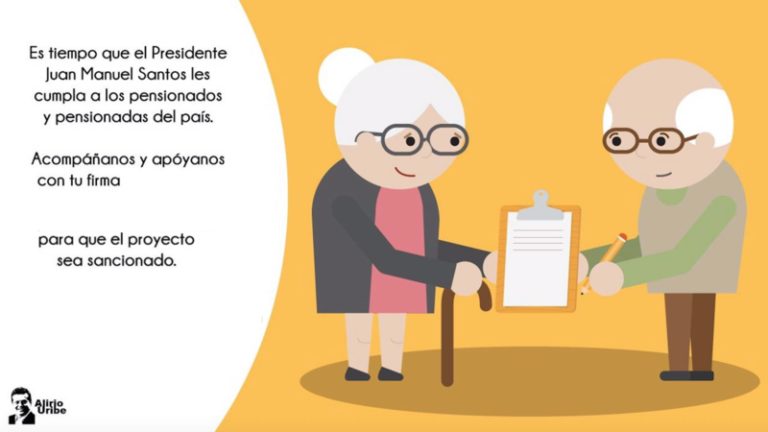 Más de un millón de firmas esperan recolectar un grupo de pensionadas y pensionados, en respaldo a una carta que entregarán al presidente Juan Manuel Santos en la que le solicitan sancione cuanto antes la ley aprobada por el legislativo colombiano que reduce del 12 al 4% el aporte al sistema de salud que realizan mensualmente.