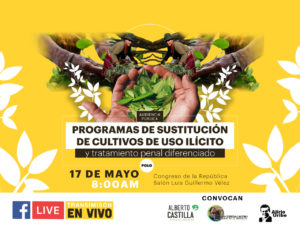 Mañana jueves 17 de mayo se realizará en el salón Luis Guillermo Vélez del congreso de la república la audiencia “Estado de la implementación de los programas de sustitución de cultivos de uso ilícito y tratamiento penal diferenciado” citado por los Senadores Alberto Castilla e Iván Cepeda junto al representante a la cámara Alirio Uribe, todos del Polo Democrático Alternativo con el fin de conocer el estado de la implementación de los programas acordados para desarrollar el punto 4 del acuerdo de Paz.