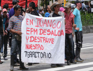 13 abr. CI.- Manifestantes de las comunidades afectadas por Hidroituango fueron atacados violentamente por la Policía. La protesta se llevó a cabo este 12 de abril luego del incumplimiento de los Acuerdos de la Mesa de Garantías de Antioquia con esta población. Hasta el momento se han reportado seis personas heridas.