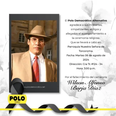 ejemplo digno de ser emulado por esta y las futuras generaciones de la militancia del Polo Democrático Alternativo, que con su legado trabajaremos en la construcción de una Colombia en paz total y vida digna.