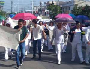 Enfermeros y enfermeras marcharon por las calles y luego se plantaron frente a la Gobernación de Sucre reclamando sus derechos laborales.